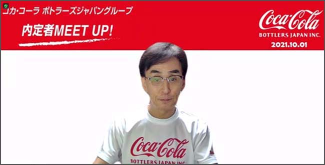 "I thank you all for choosing Coca-Cola Bottlers Japan from all the various options you may have considered as your future workplace and for participating in this ceremonial event we held for prospective employees today. I feel very happy greeting you today and welcoming you next April when you formally come on board as the new members of the Coca-Cola Bottlers Japan group.