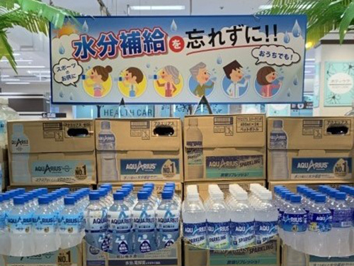 We display anti-heatstroke posters with our products on the sales floor to communicate the importance of hydration.