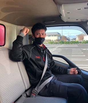 Before I joined the company, I was on a sports team, so I worried that my senior colleagues would be too strict. When I actually started working here, I found that even though they're busy with work, my supervisors and senior colleagues are very kind, and the employees got along well with each other, so I'm having fun. The work was physically demanding, as I had heard from my senior colleagues. However, since last year we have been streamlining our operations by doing things like dividing the labor of loading products to be used the next day and settling accounts, which used to be done after returning to the office, and getting rid of our daily morning meetings and holding them using company-issued smartphones instead.