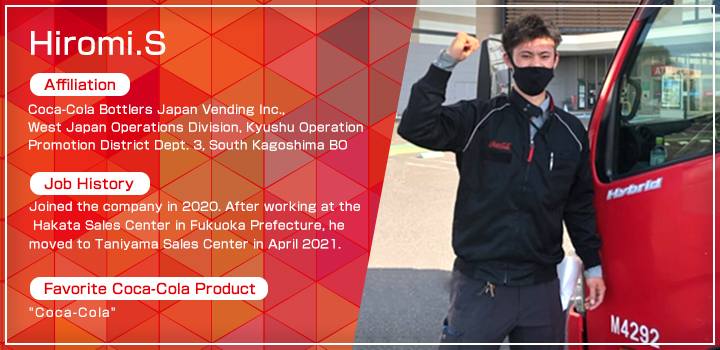 For our 4th installment, we interviewed Hiromi-san, who is in his second year at Coca-Cola Bottlers Japan Vending Inc., working at the South Kagoshima BO Taniyama Sales Center.