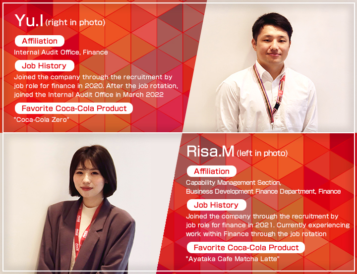 For our fifth release, we interviewed Yu-san, who has been with the company for 2 years since he joined the company through the recruitment by job role for the finance field after graduating from an American university, and Risa-san, who was in her first year of employment.