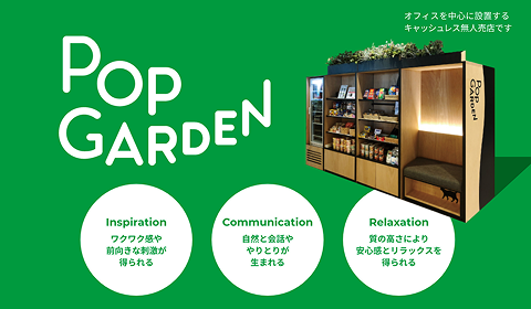 Cashless, unmanned shops primarily for offices, creating natural spaces for communication and relaxation.